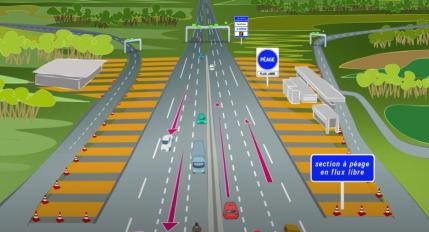 Depuis 2024, les automobilistes empruntant les autoroutes A14 et A13 circulent en flux libre sur des voies provisoires appelées « chenaux », situées aux extremités des anciennes barrières de péage.